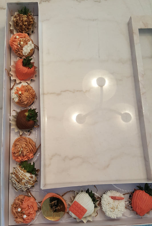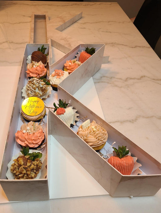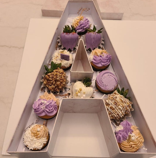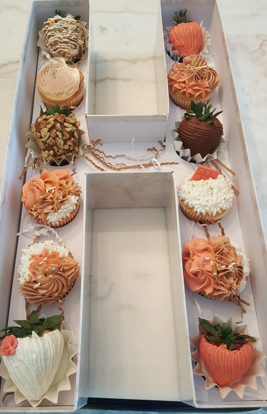 The perfect mix of sweet and chocolate! Our Newly Launched Cupcakes / Strawberries boxes. Boxed in a Letter or Number of your choice. How is that for customizing. High quantity ordered for Valentine’s Day, Mother's Day, Special Occasion!
