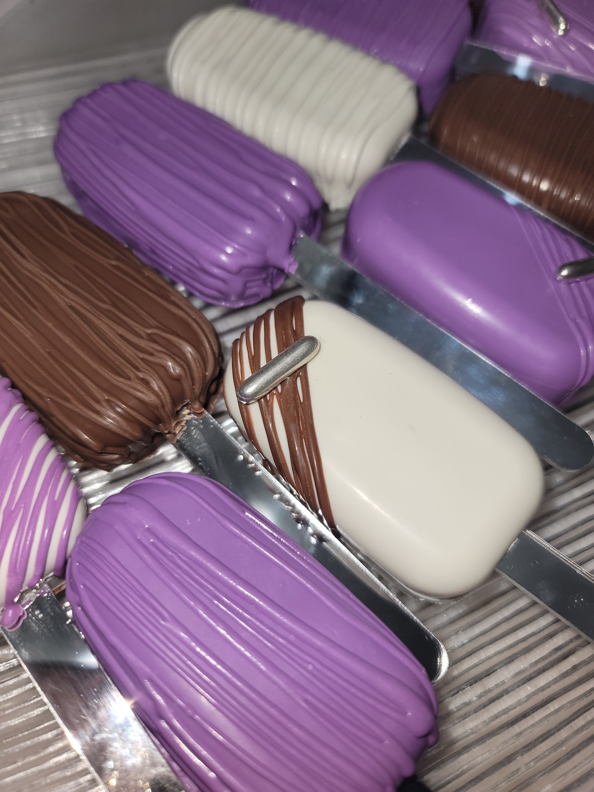 The perfect mix of sweet Rice Krispies Popsicles covered in premium chocolate. Chocolate can be in any color chocolate.